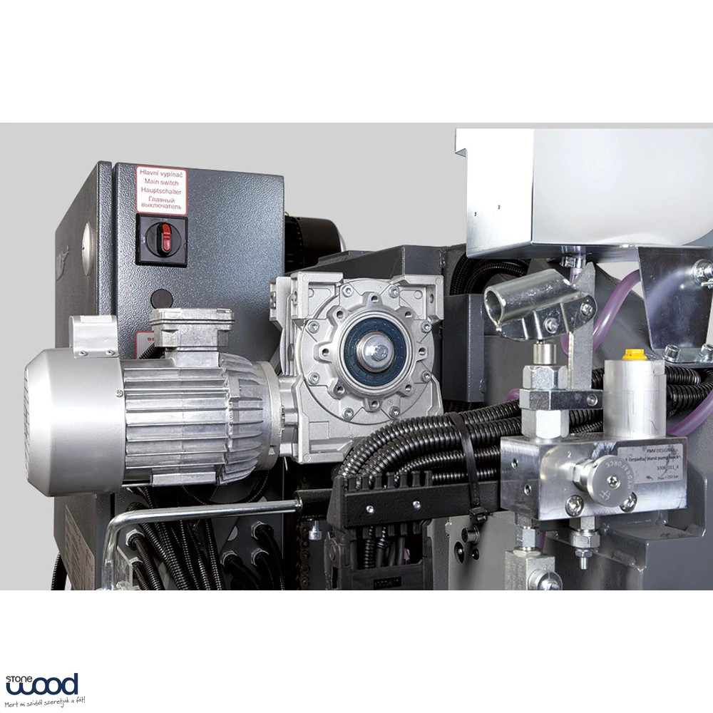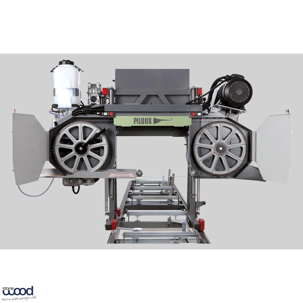 A hajtásról 5,5 kW-os fűrészlapmotor gondoskodik, míg a függőleges mozgatást 0,55 kW-os motor segíti. A magyar Pilous-forrás szerint a fűrészkar állítható keménykrómozott rudakon fut, ami nagy pontosságot és hosszú élettartamot biztosít, a fel-le mozgást pedig kétoldalas szinkron láncos rendszer végzi. A központi panelről vezérelhető mozgatás gyors és lassú pozicionálási móddal is használható, ami megkönnyíti a pontos vastagságbeállítást.
