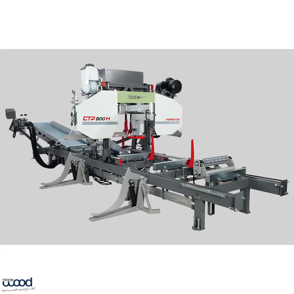 A Pilous CTR 800 H vízszintes szalagfűrész a PILOUS hidraulikus fűrészgépei közé tartozik, és kifejezetten olyan felhasználók számára készült, akik közepes vagy nagyobb volumenű rönkfeldolgozásnál már nemcsak pontos vágást, hanem gyorsabb anyagkezelést és nagyobb üzemi hatékonyságot is elvárnak. A gyártó a modellt hidraulikus rönkmozgatással szerelt univerzális fűrészgépként pozicionálja, amely 830 mm maximális vágási átmérőjével a legtöbb általános fűrészüzemi feladatra alkalmas.